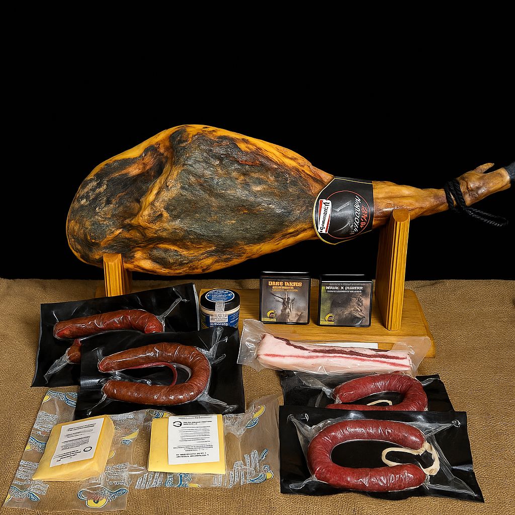 - 1 unidad de Jamón linaje negro. (fuera de la norma del ibérico). Curado en Montánchez. Curación de 30 meses a 36 meses. Peso de la pieza. 5,00kg-6,00kg.